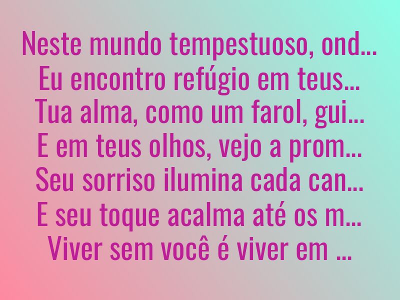 Que o nosso amor seja como um verso de Mario Quintana, leve e suave, como um beijo sem pressa, que se prolonga no tempo e no coração.