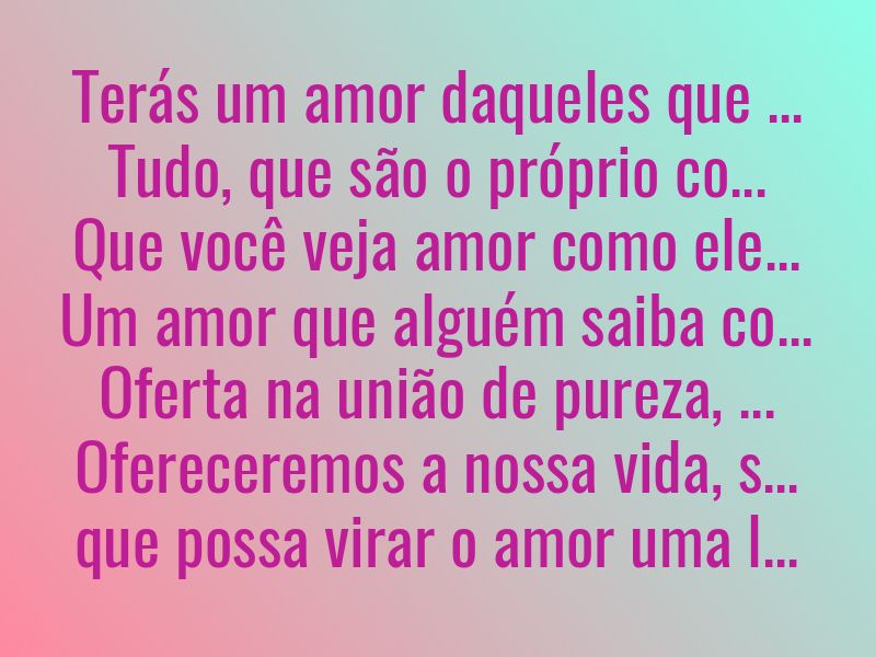 Terás um amor daqueles que têm