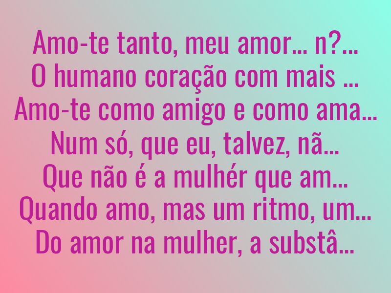 Amo-te tanto, meu amor... não cante / O humano coração com mais verdade... / Amo-te como amigo e como amante / Numa sempre diversa realidade.