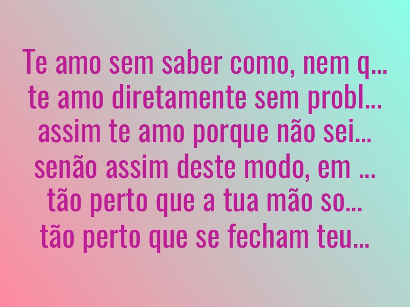 Te amo sem saber como, nem quando, nem onde,