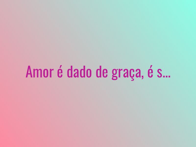 Amor é dado de graça, é semeado no vento, na cachoeira, no eclipse. Amor foge a dicionários e a regulamentos vários.