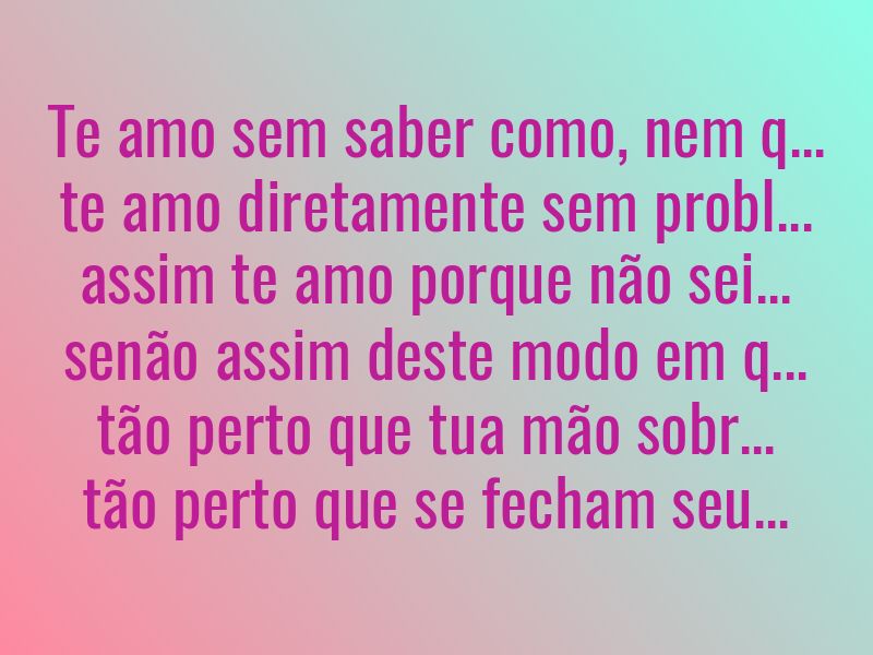 te amo diretamente sem problemas nem orgulho: assim te amo porque não sei amar de outra maneira.Sinto um amor profundo e inconfundível